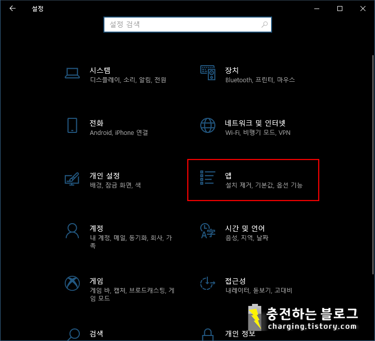 윈도우10 설정 앱 및 기능에서