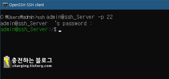 ex) ssh admin@ssh_server.com -p 22